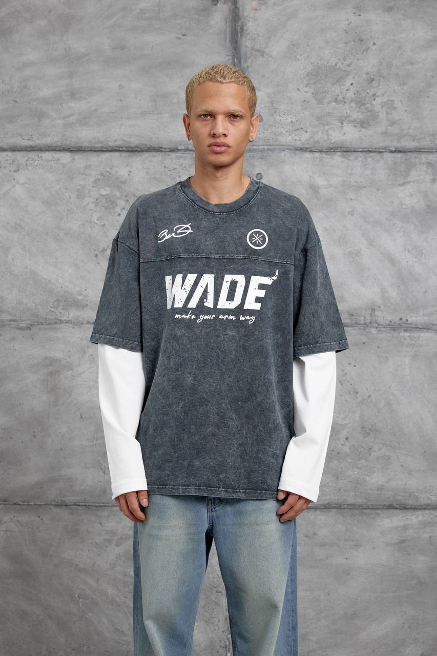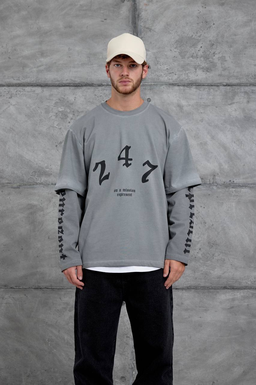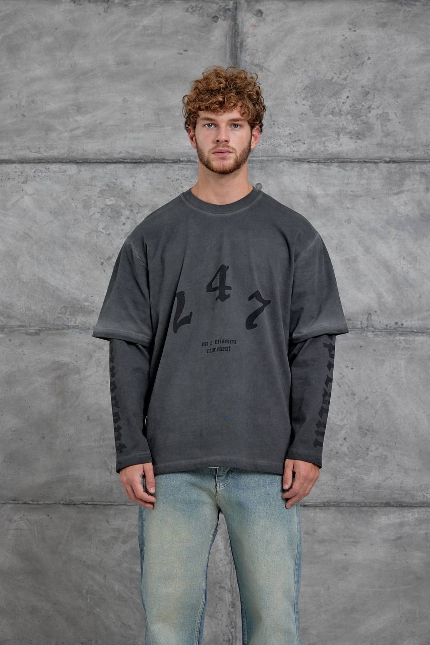 חולצת אוברסייז שרוול על שרוול אפור וואש