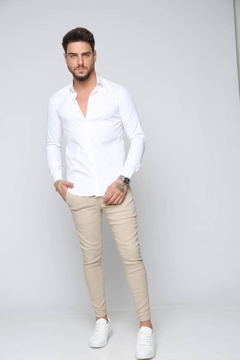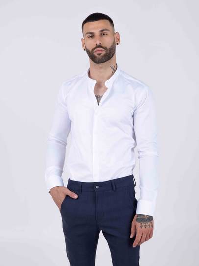 מכופתרת סלים פיט צאוורון סיני מבד פישתן בצבע לבן