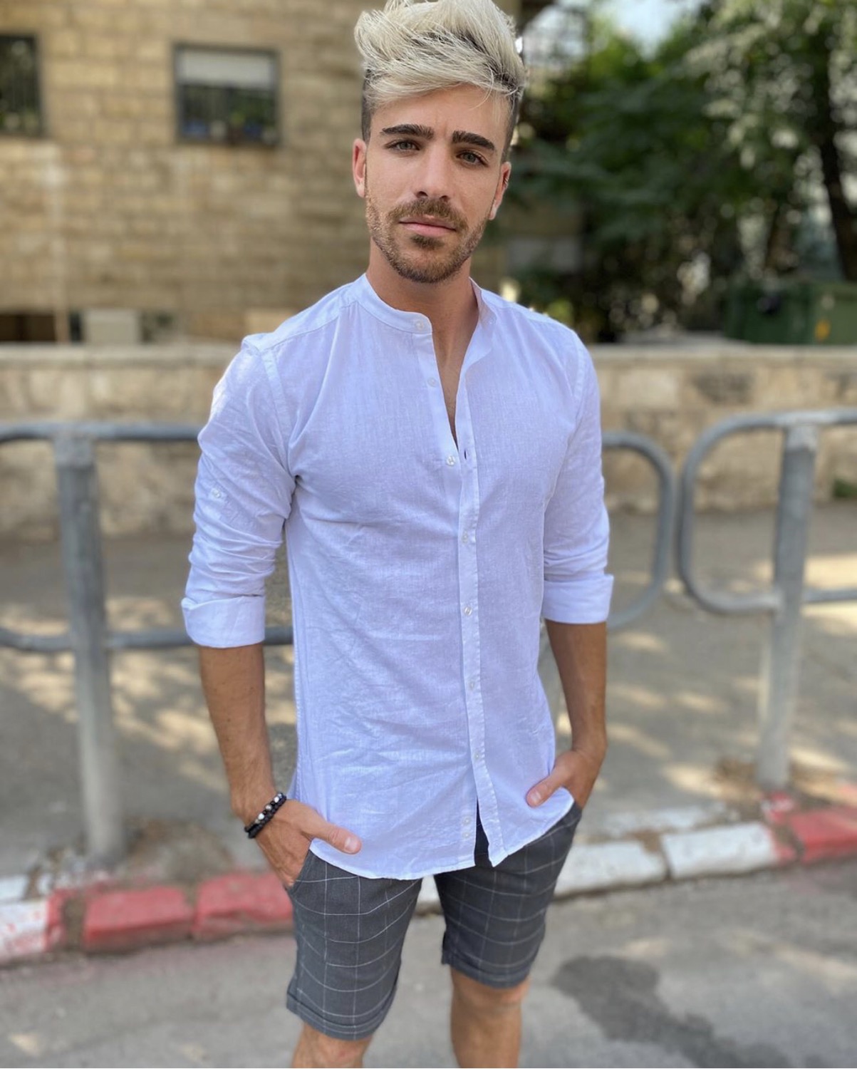 מכופתרת סלים פיט צאוורון קלאסי מבד פישתן בצבע לבן