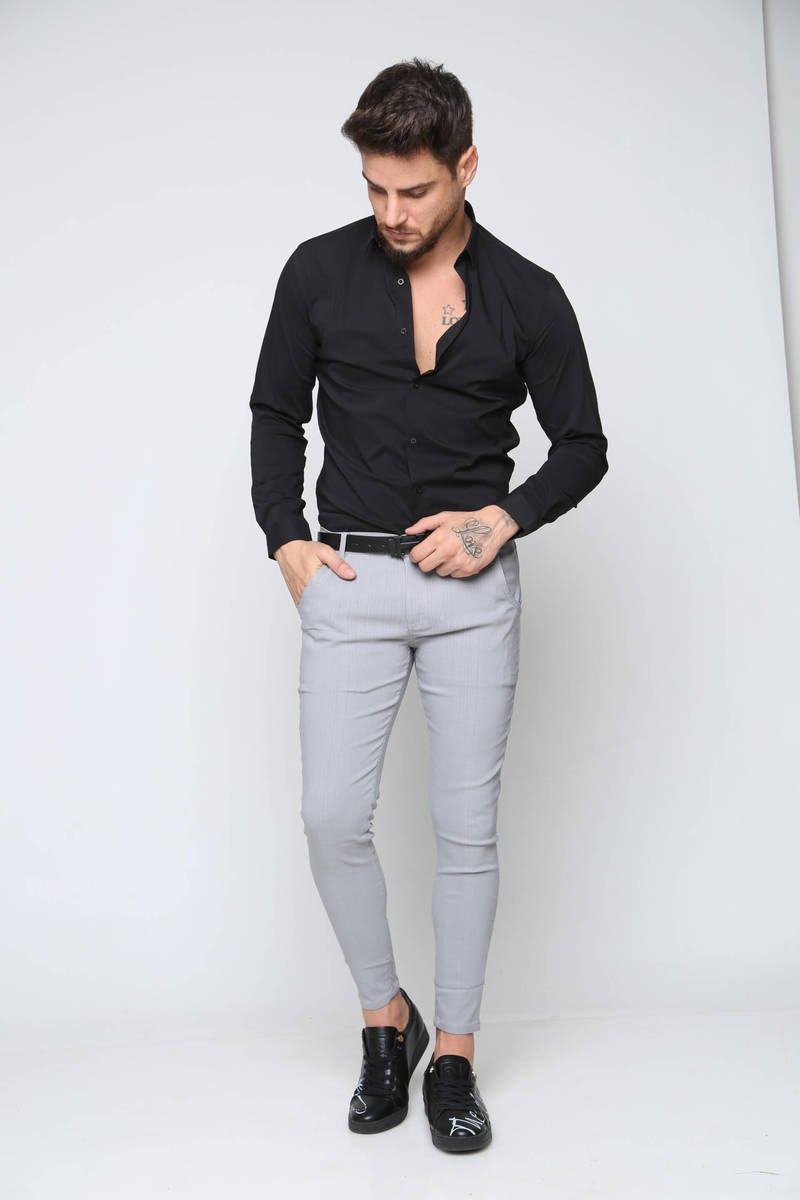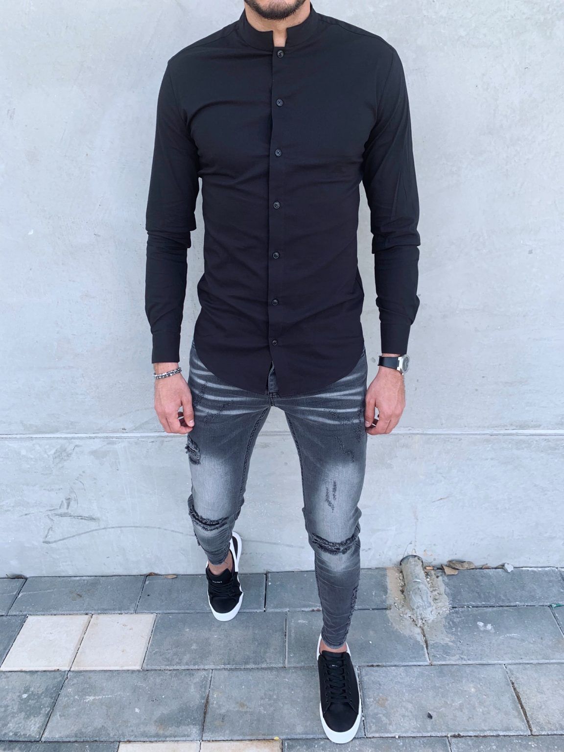 מכופתרת סלים פיט צאוורון סיני בצבע שחור
