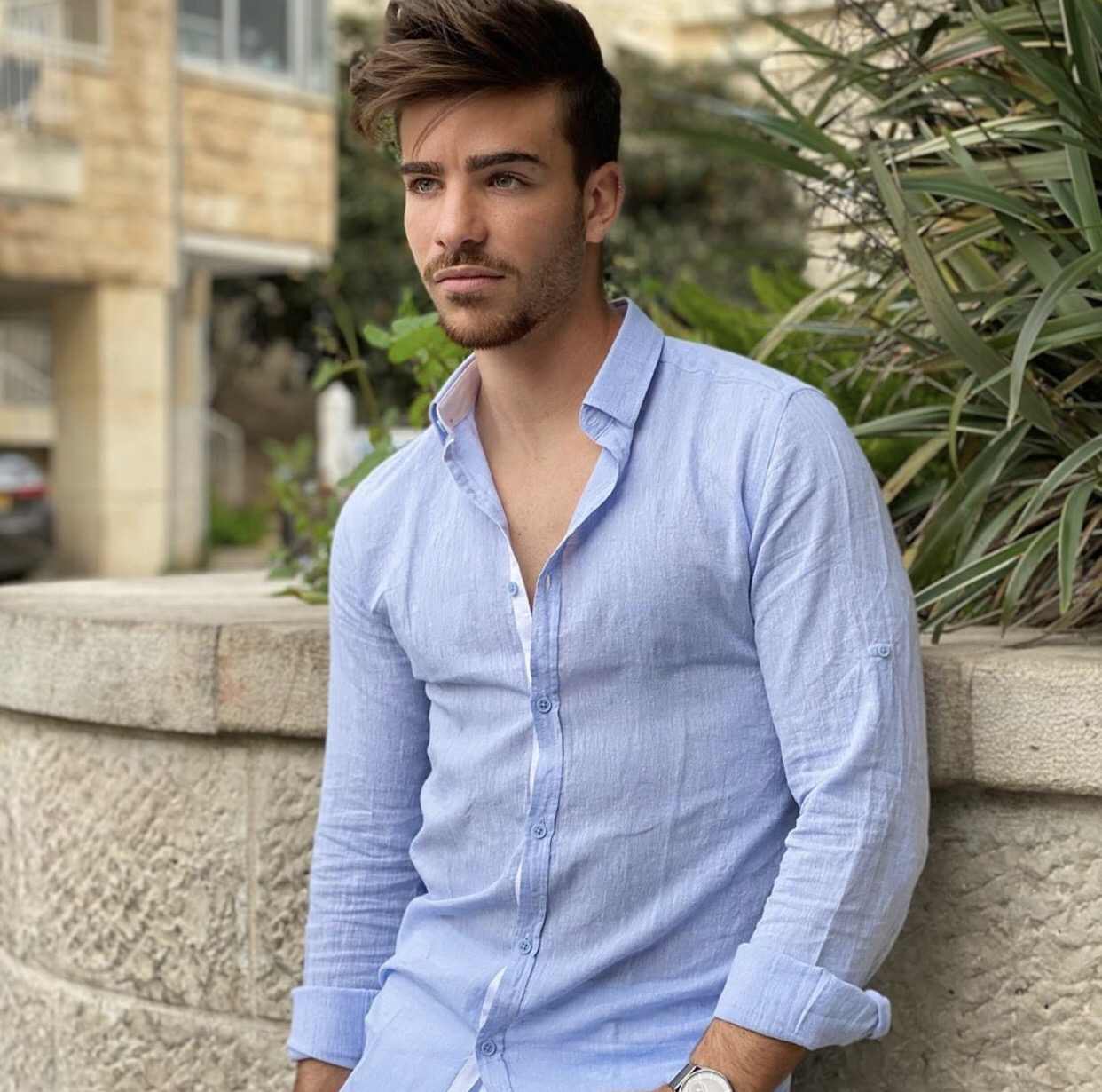מכופתרת סלים פיט צאוורון קלאסי בצבע תכלת