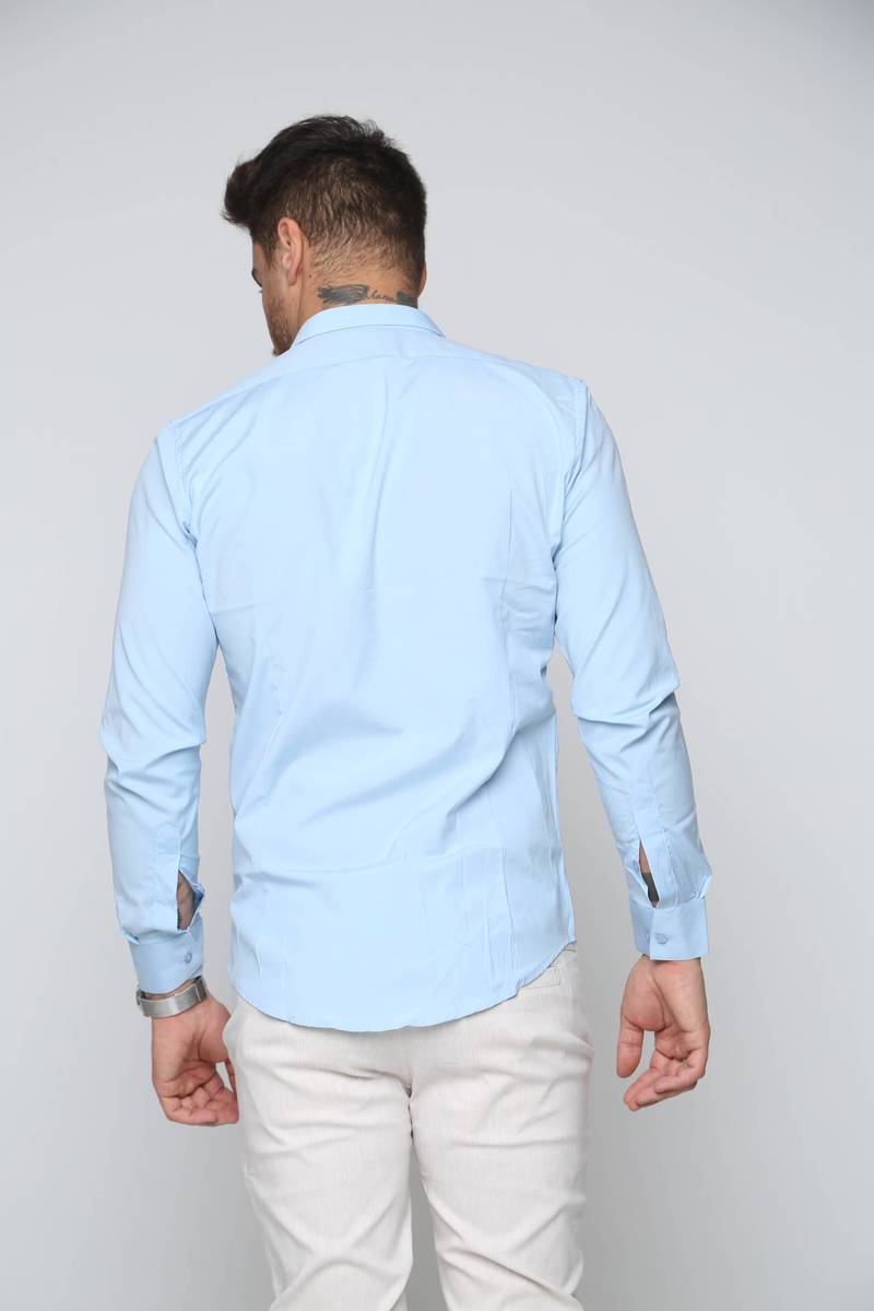מכופתרת סלים פיט צאוורון קלאסי מבד פישתן בצבע תכלת