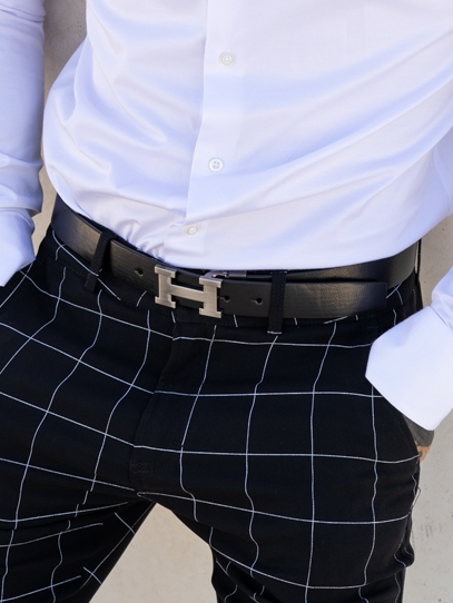 חגורה עור בצבע שחור אלגנט לגבר 3.5 מ״מ לוגו H
