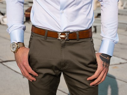 חגורה עור קאמל אלגנט לגבר 3.5 מ״מ לוגו H