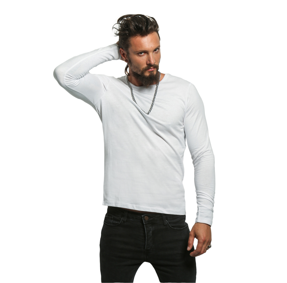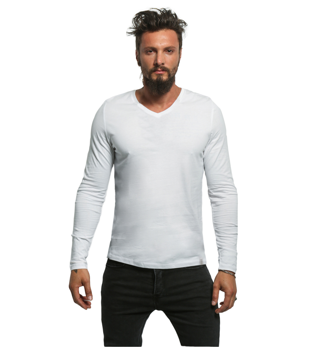 צווארון V שרוול ארוך // לבן // דגם – 390 // לייקרה