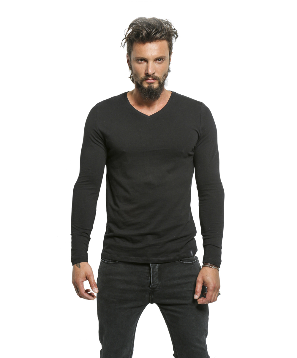 צווארון V טישרט ליקרה // SLIM FIT // בצבע שחור