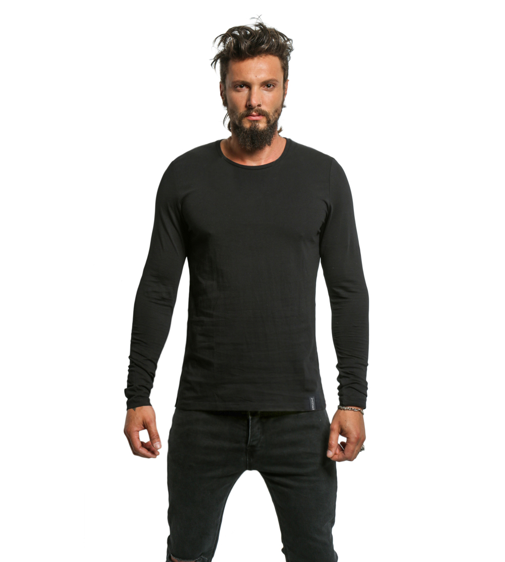 צווארון עגול שרוול ארוך // שחור // דגם – 395 // לייקרה צווארון עגול