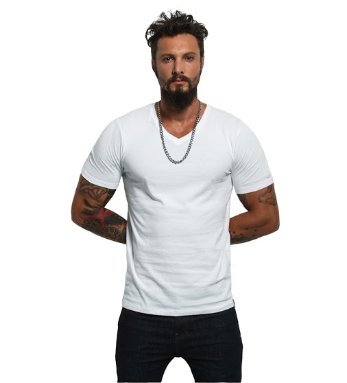 צווארון V טישרט ליקרה // SLIM FIT // בצבע לבן