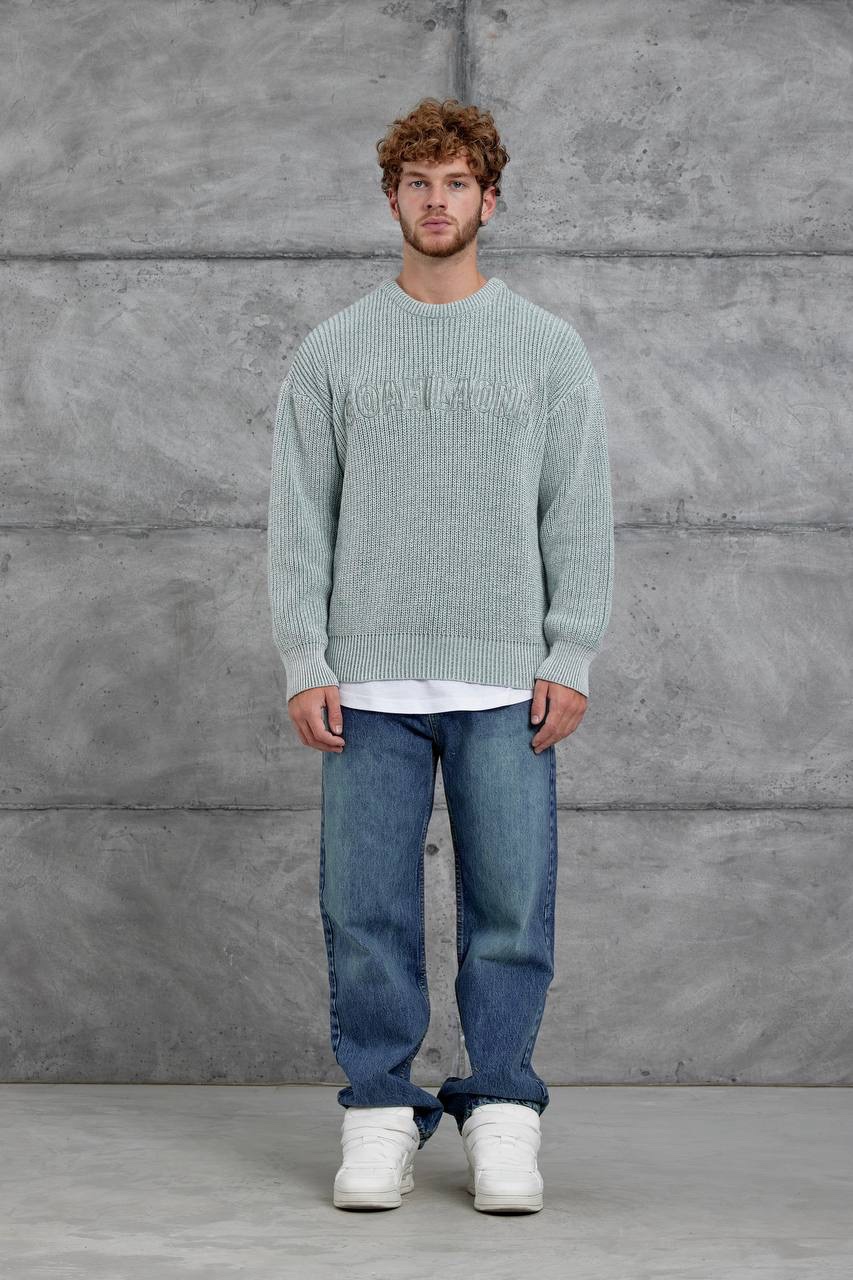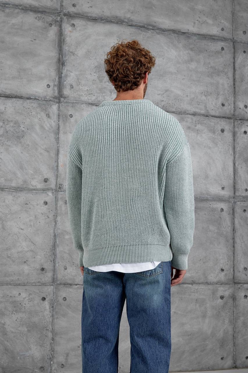 חולצת סוודר סריג לגבר בצבע ירוק בהיר עם רקמת לוגו