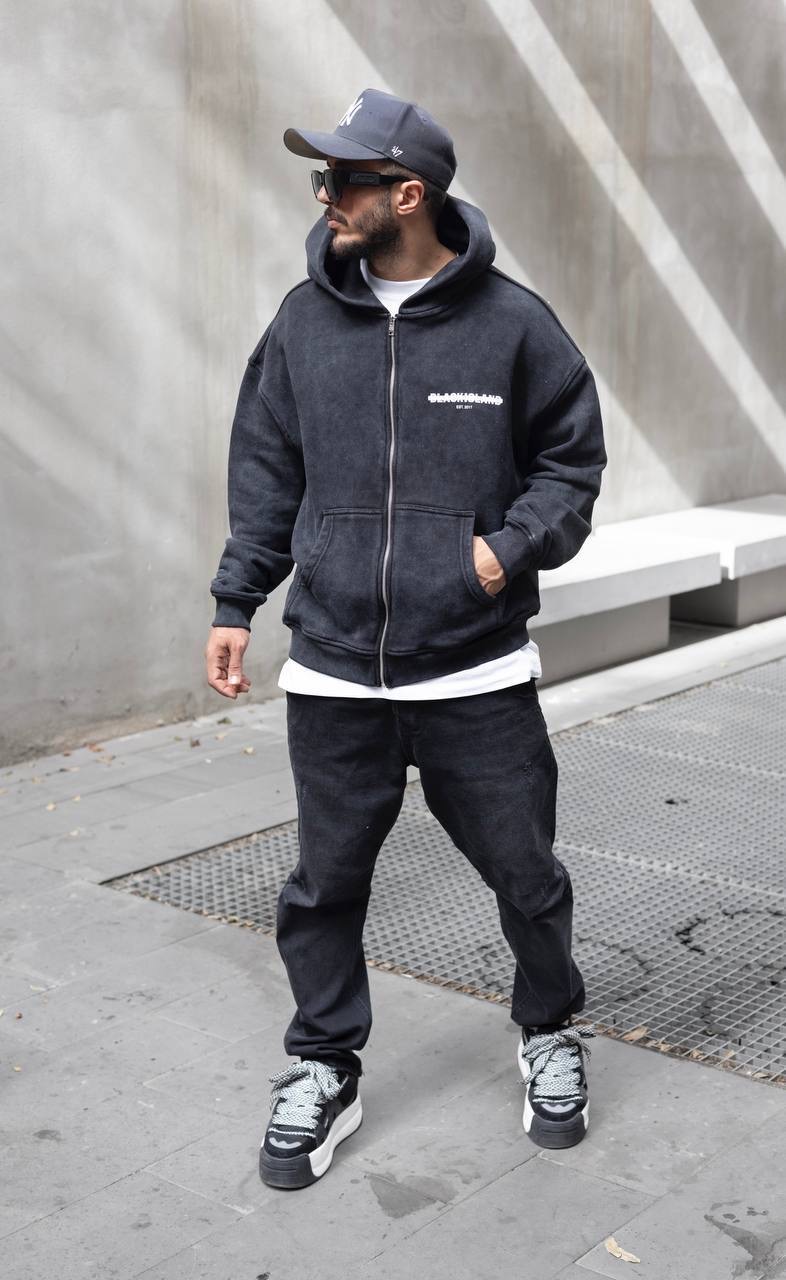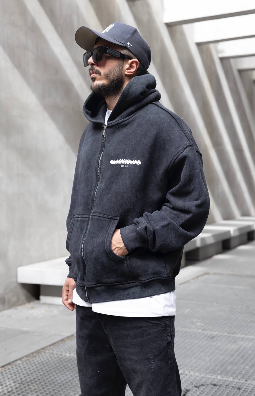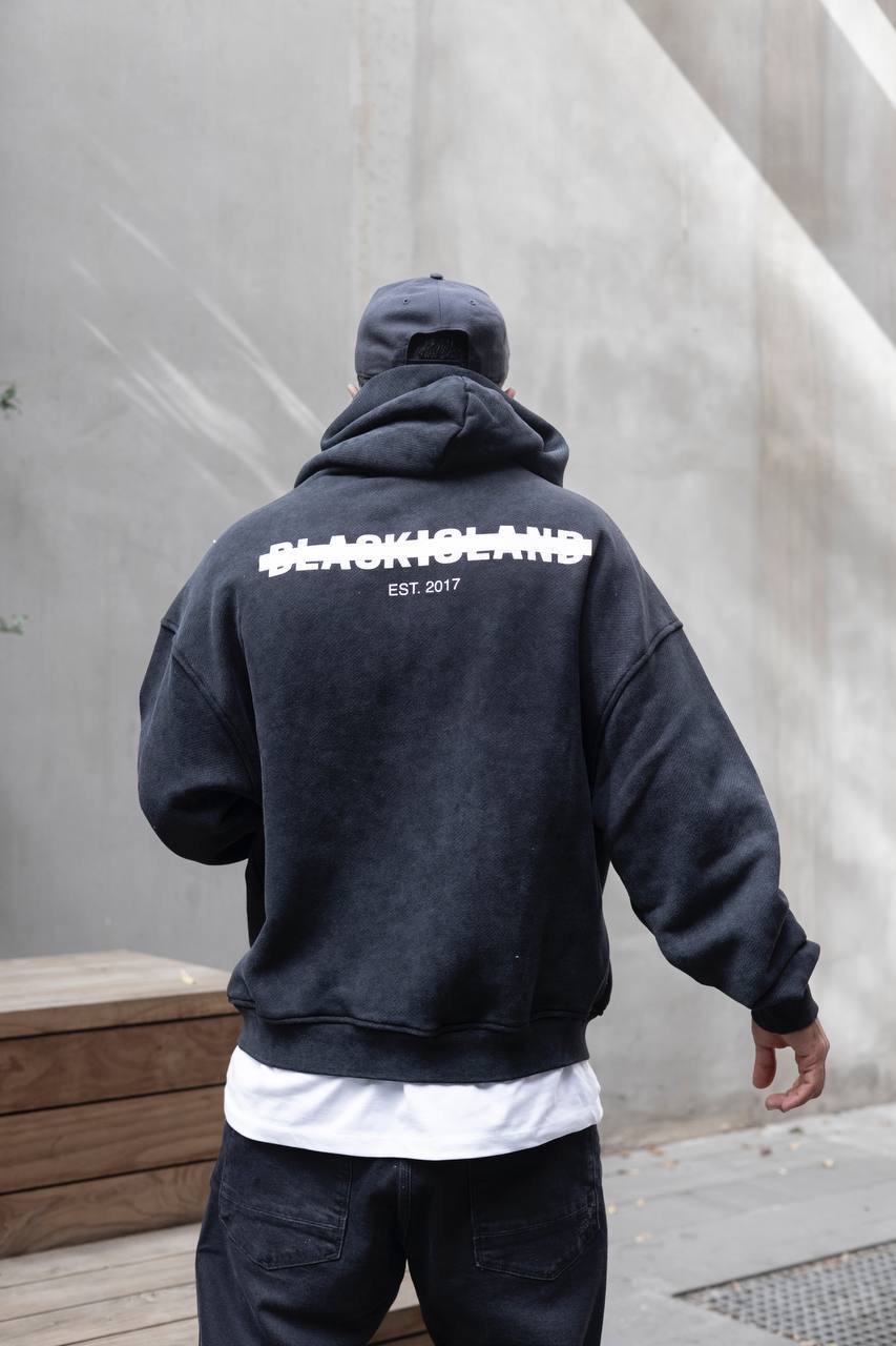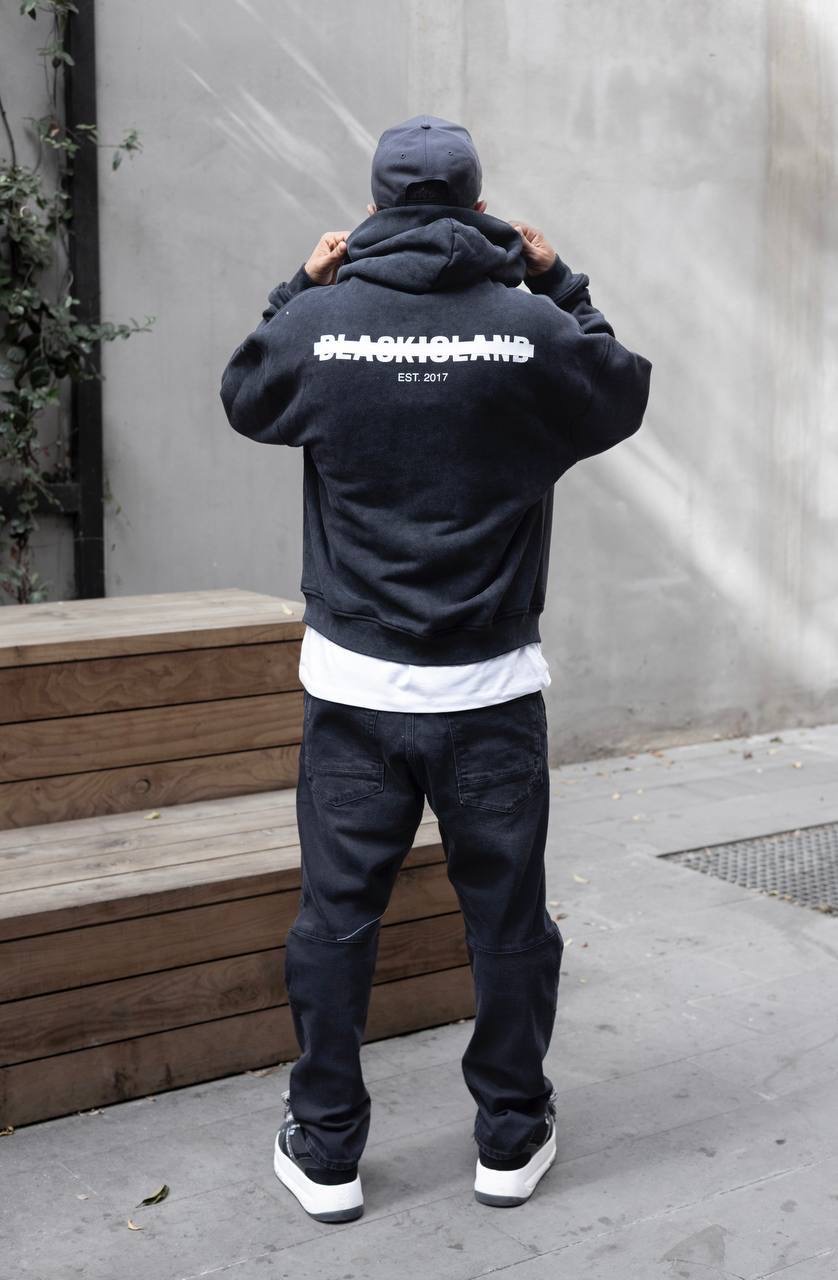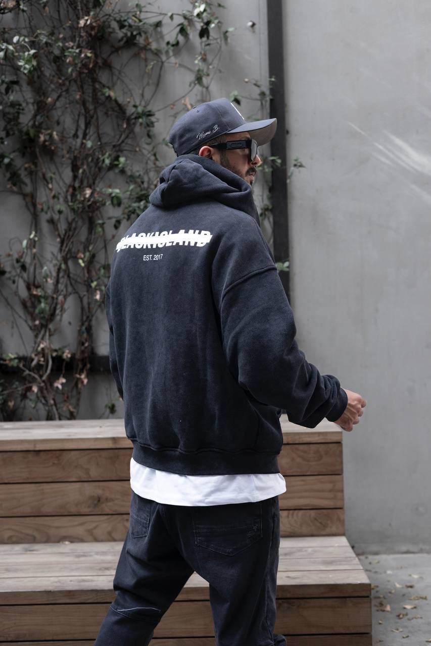 Black Island Hooded קפוצ׳ון בלאק איילנד לוגו קטן בצבע שחור שטיפה