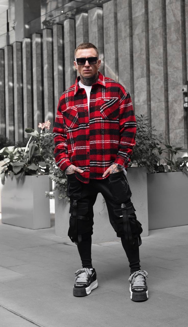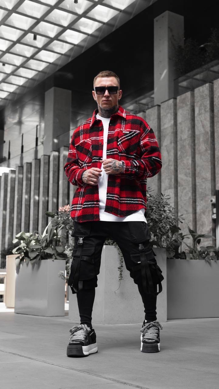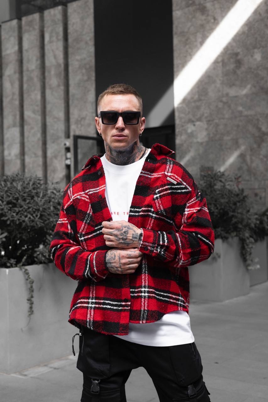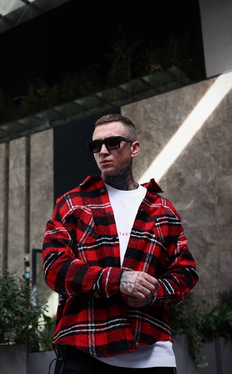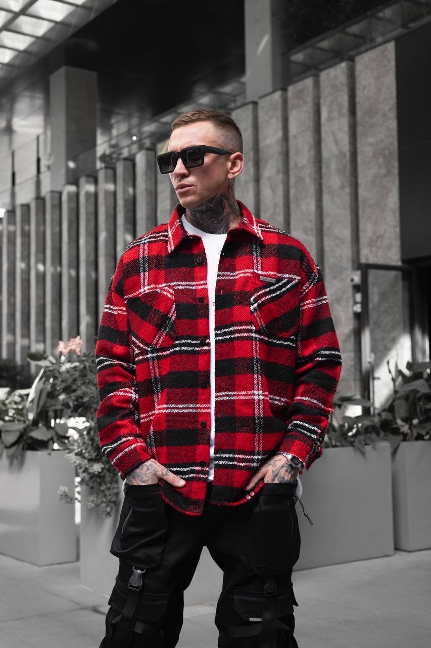 Black Island Shirt עליונית משובצת מבד עשיר בכותנה בלאק איילנד בצבע אדום